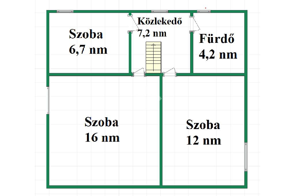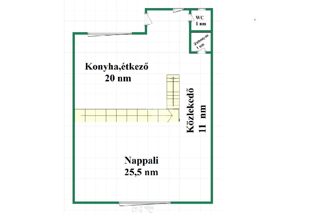 Elosztása: Földszinten van egy nappali ,étkezős konyha, WC és zuhanyzó továbbá a felső szinten 2 db hálószoba, dolgozószoba és egy fürdőszoba található.
