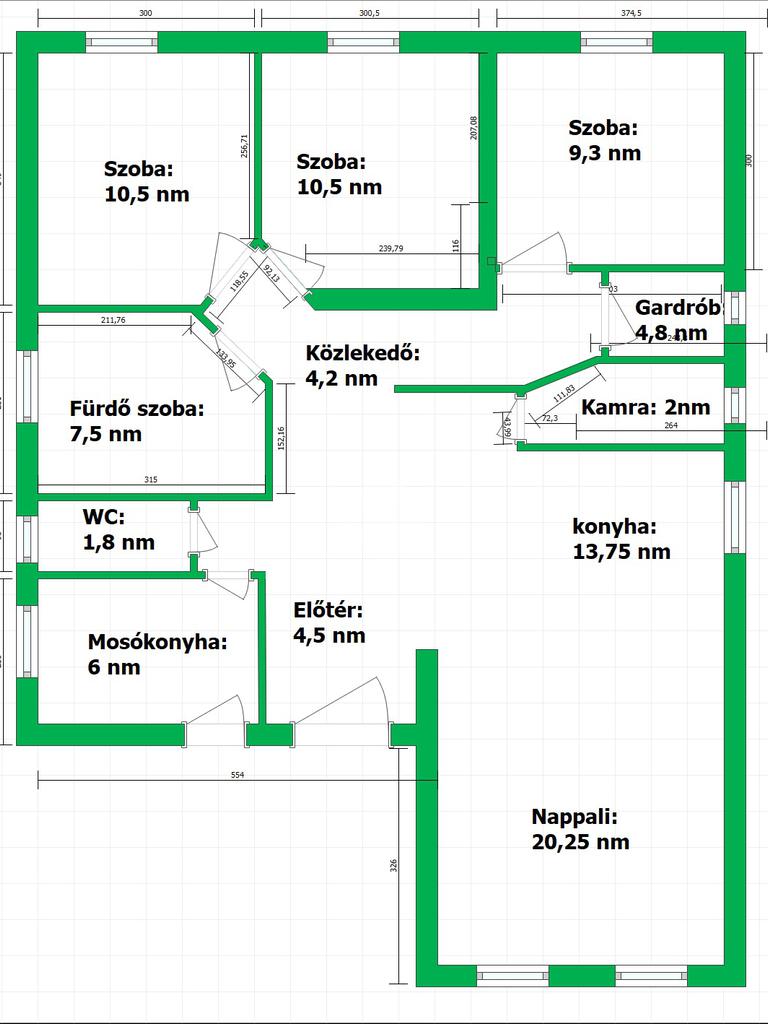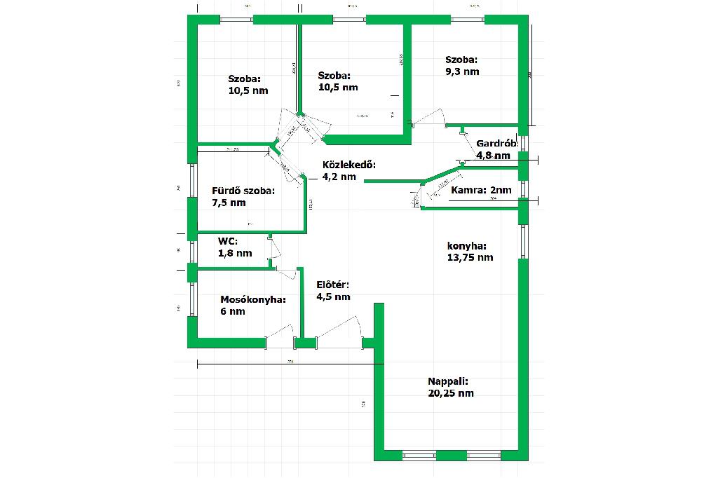 Az elosztás praktikus: Amerikai konyhás nappali, három hálószoba, külön fürdő és WC, mosókonyha, gardróbszoba és kamra.