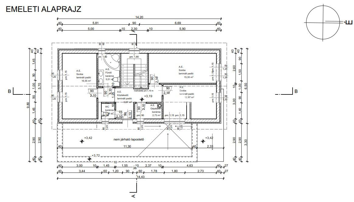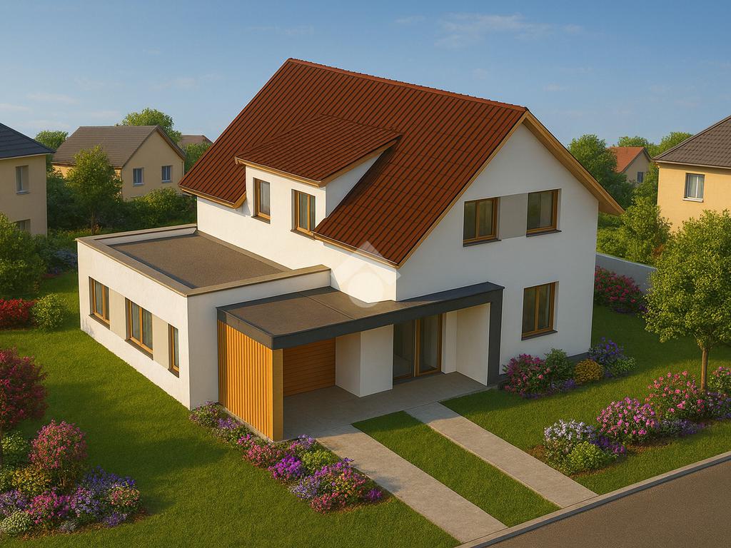 Az ingatlan tégla falazattal épül, cserépfedéssel, valamint 10 cm-es dryvit szigeteléssel. Műanyag, thermo üvegezésű nyílászárók gondoskodnak a kiváló hő- és hangszigetelésről. Elosztása: földszinten található garázs, amerikai konyhás nappali, hálószoba, fürdőszoba, míg az emeleten 3 db hálószoba, fürdő WC külön és egy gépészeti helység. A fűtésről gázcirkó gondoskodik, padlófűtéses hőleadással.
