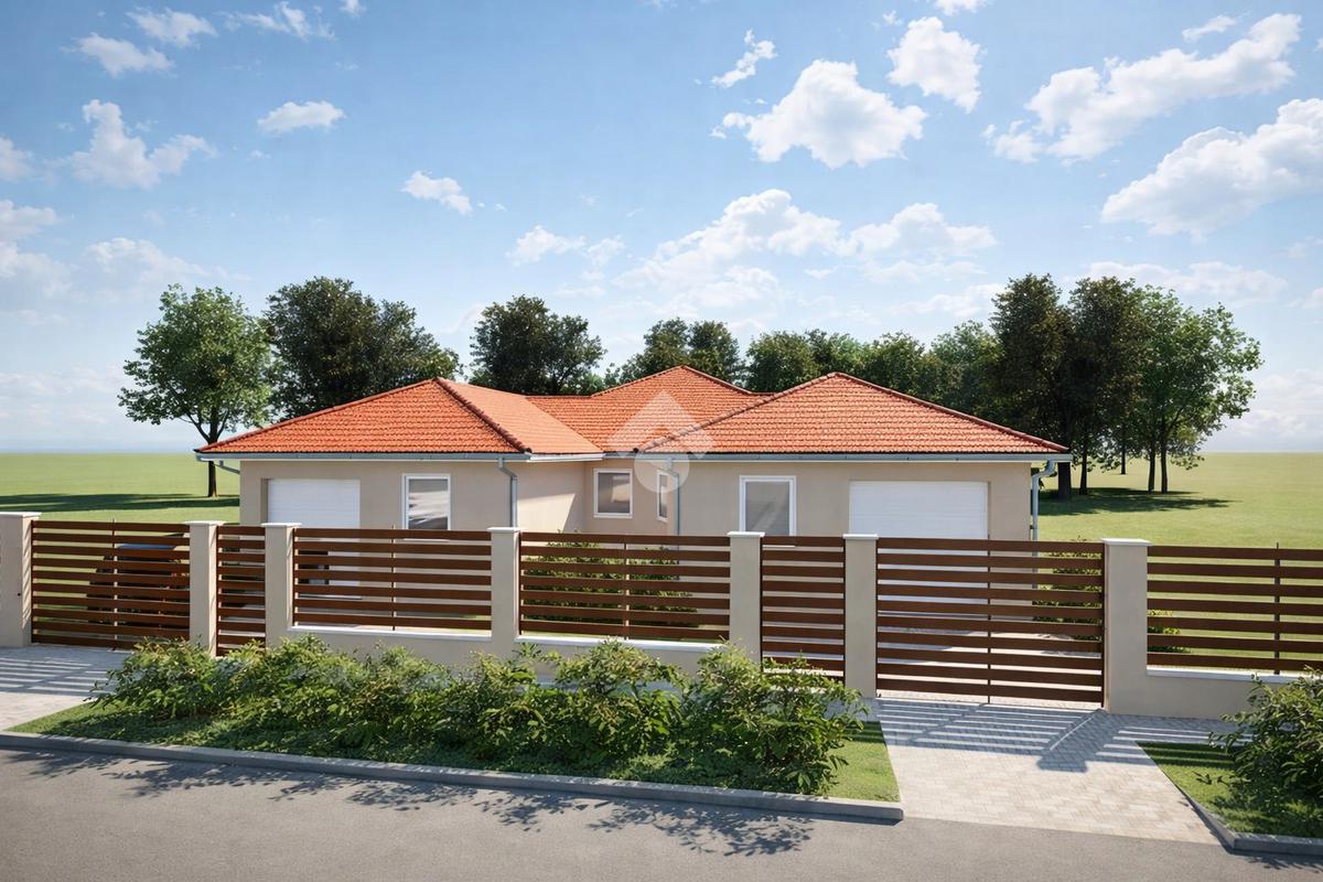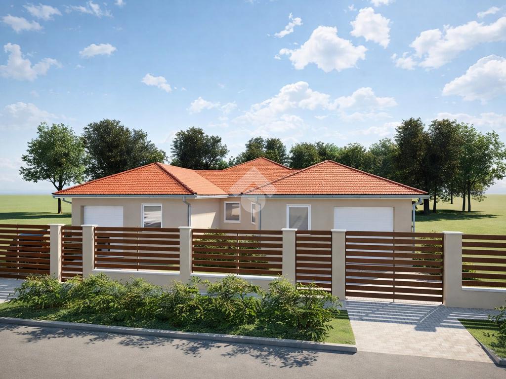 Elosztása: Amerikai konyhás nappali, 3 db Hálószoba, 2 db fürdőszoba, háztartási helyiség, illetve garázs, ami igény esetén szobává is átalakítható.